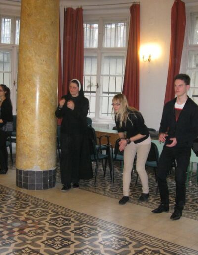 Tegnap elmentünk az animátorokkal és Ewa nővérrel Szent Margit Gimnáziumba bansot tanítani.