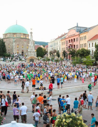 A nagy távolság miatt acsak kevesen utazhattak el kis hazánkból, ezért a magyar fiatalok Pécsett gyűltek össze, a HungaRio-n. Az 1600 fiatalon túl püspök atyák, atyák, szerzetesek is szép számmal jelen voltak, s közülük mi nővérek sem hiányozhattunk. Jelen voltunk a az önkéntesek, a VoluntaRio-k, avagy pontosabban HungaRigók között is, de maradt arra is idő, hogy bekapcsolódjunk a találkozó programjába, délután pedig a lelkiségi mozgalmak utcájában felállított sátorban az animátorokkal, szalézi atyákkal próbáltuk a szalézi karizmát népszerűsíteni, s közben hívtuk az arra járókat a következő nagy eseményre az augusztus 14-18 között megrendezésre kerülő SzaléziPartra, Balatonkenésre.