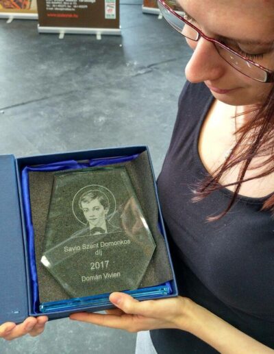 Az Egerből érkező animátorcsapat számára, vagyis számunkra, nagy élmény volt, hogy részt vehettünk a Kazincbarcikán megrendezett Don Bosco ünnepségen. A szombati program szentmisével kezdődött, amely végén az egriek nagy örömére, egyik animátortársunk, Domán Vivien, sok éves áldozatos munkájáért Savio Szent Domonkos díjban részesült. Ezután pedig egy közel két órás műsoron vehettünk részt, amelyben szerepet kaptak, az itt tevékenykedő szaléziak által fenntartott iskola tanárai és növendékei. A műsor, számomra nagy élményt nyújtott, látva hogy ebben a kis városban mennyi tehetséges diák nevelkedik, és öröm volt látni a szaléziak áldozatos munkájának gyümölcsének egy kis részét. Több ismerős dallam is felcsendült, nagy örömünkre. Többségében színdarabokat láthattunk, de akadtak előadások a művészetek egyéb területeiről. Nagyon köszönjük, hogy részt vehettünk ezen a rendezvényen és más városokból érkező szalézi munkatársakkal is találkozhattunk. 🙂