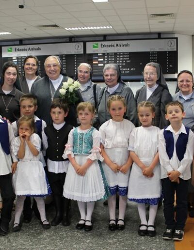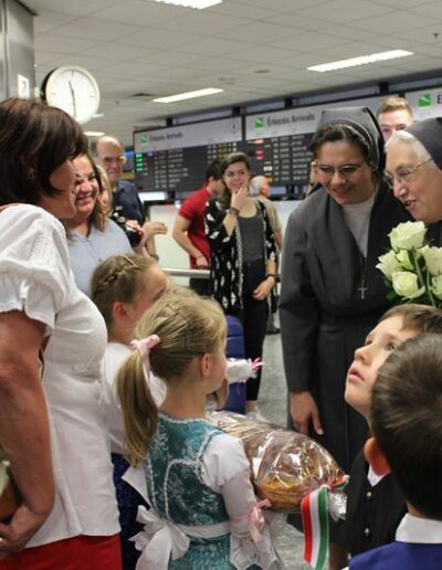 Május 19-én, nemcsak mi nővérek köszöntöttük a repülőtéren a Generális Anyát, hanem a Mogyoródi Laura Vicuna Óvodánk néhány népviseletbe öltözött ovisa, nevelőikkel, szüleikkel. Az első nap délutánján egy igazán érdekes, de ugyanakkor bensőséges, családias találkozásra került sor, a Magyarországon élő szalézi nővérek és a a Rómából jött kedves vendég között, aki sok színes hírt hozott a szalézi világból.