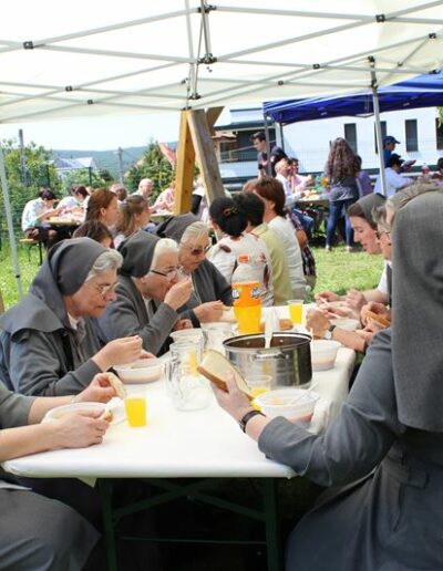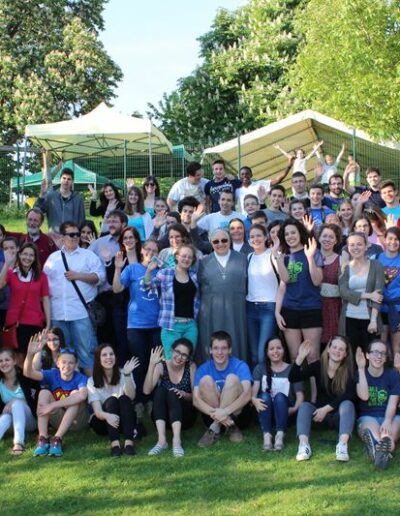 Május 20-án, a Pesthidegkúton lévő házunkban megtöltöttük a hatalmas udvart, ugyanis rengeteg gyermek, fiatal, család, ismerős és érdeklődő jött el, hogy közösen ünnepeljünk. Együtt volt a Szalézi Család: atyák, munkatársak, animátorok, volt növendékek, sőt a határon túlról is voltak vendégeink: Ausztriából, Szlovéniából és Szlovákiából jöttek a tartományfőnöknők és nővérek.