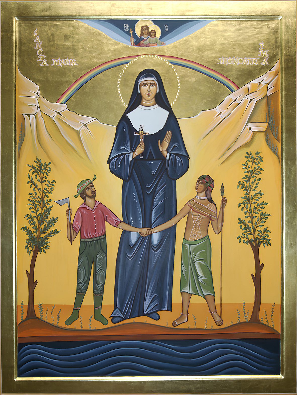 A szentté avatás napjának estéjén Chiara Cazzuola generális anya mutatta be a Troncatti Szent Máriát ábrázoló ikont, amelyet a Szíriából származó Randa Kortas nővér imádságos lelkületben készített. Ehhez közölt néhány gondolatot: Isten Igéje, amely Jézus mintájára Troncatti Mária nővér életében „megtestesült”, János evangéliumára utal: „Nincs senkiben nagyobb szeretet annál, mint aki életét adja barátaiért” (Jn 15,13). A szeretet által megfeszített Krisztussal való egyesülése szavaiban visszhangzik: „Jézus lábainál találok vigasztalást; egy pillantás a nyakamban lévő feszületemre életet, erőt és szárnyakat ad a munkához…”