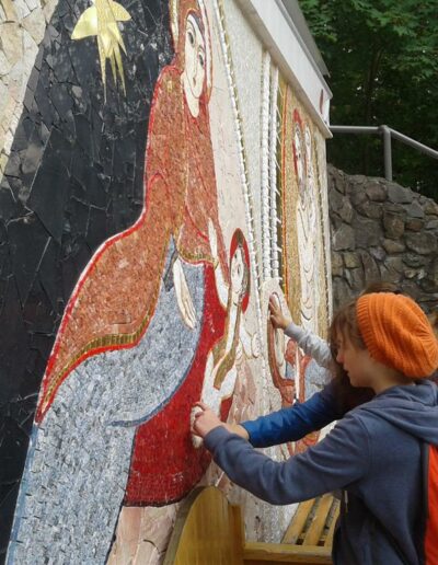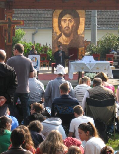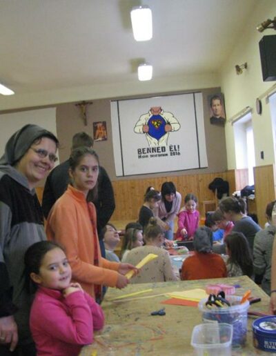 Kiszálltunk a kisbuszból és körülnéztünk. Egy gyönyörű helyen találtuk magunkat, ahol szinte még egyikünk sem járt egy-két kivétellel. Először a templomot néztük meg, sajnos csak kívülről, mert épp egy szentmise zajlott. A szabadtéri oltár felé mentünk tovább, hol egy szűk körű Istentiszteletre készültek,így hamar rájöttünk,hogy valami más elfoglaltsággal kell indítanunk, így elindultunk, hogy megkeressük Szent László király lova patájának a nyomát. Egy kis túrázás után oda is értünk. Próbáltuk megtalálni a nyomot, amely nagyjából sikeredett is. Csináltunk pár képet magunkról és a cipőinkről, hogy azoknak, akik nem jöttek készíthessünk egy találós kérdést, mely természetesen jutalomért ment. Elindultunk visszafelé. Útközben egy híres emberes játékot játszottunk, s mire visszaértünk már véget ért a szűk körű istentisztelet, így megnéztük az oltárt, az ott található ereklyét és a szent emberekről mozaik technikával alkotott képeket, melyek szó, ami szó gyönyörűek voltak. Ettünk egy kicsit Kati nővér madárlátta sós rágcsálnivalójából, majd felküzdöttük magunkat a remetelakokhoz, de szó szerint. El sem tudtuk képzelni, hogy a régen itt lakó emberek, hogy bírták ki ezt a megpróbáltatást nap, mint nap. A kilátás nem volt mindennapi, de a hegyekben lévő frisslevegő sem. Közkívánatra nápolyit ettünk, de előkerült ott még szendvics, „elcsent” süti és májkonzerv is. Egy kis ideig csepergett az eső, de hamar el is állt, így elkezdhettük a visszafele utat, ami már sokkal könnyebb volt, mint a felfelé vezető. Odalent bementünk a templomba, hogy mostmár azzal is foglalkozzunk, amiért ténylegesen odamentünk. Kati nővér lapokat, tollakat és mappákat osztott ki, hogy meg tudjuk írni motivációs levelünket. Meglepődve tapasztaltuk, hogy „Itt már megint mise lesz.”, így kintre mentünk, hogy elvégezzük a ránkbízott feladatot. A szél kellemesen fújdogált, az idő enyhe és őszies volt és sütött a nap. Ott, a padon ülve néhány társam társaságában és telefonos segítséggel anyát felhívva fogalmazódott meg bennem, hogy mi is az az animátor, mi a feladata, s hogy miben vagyok már elég jó és miben kell változtatnom, hogy elérhessem a célom: az animátorrá válást. Egy animátor mindig legyen megértő, szerető, gondoskodó, segítőkész és, ahogy azt Ági nővér oly gyakran hangoztatta: „A gyerekeket ne önmagához, hanem Istenhez vezesse!”. Miután mindenki megírta a Motivációs levelét, megnéztük a Mária szobrot, hol imádkoztunk azért, hogy mindnyájunkból jó animátor lehessen az elkövetkezendőkben. Még játszottunk egy kicsit, de, hogy „ne feszítsük tovább a szülők idegeit”, elindultunk haza. Pedig a játék nagyon jó volt és már épp kezdtünk belejönni… A hazafelé úton próbáltuk megérteni a logi-sztori nevű játék lényegét,ami a végén még sikerült is. Igaz, kicsit eltévedtünk, de közös erővel, meg persze azért egy kis csalással (helyi ember segítségével) visszataláltunk a jó útra.