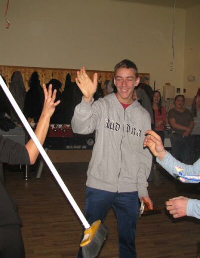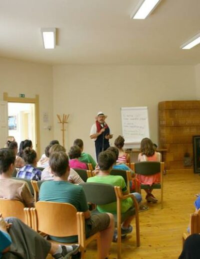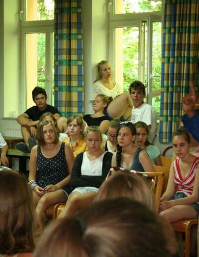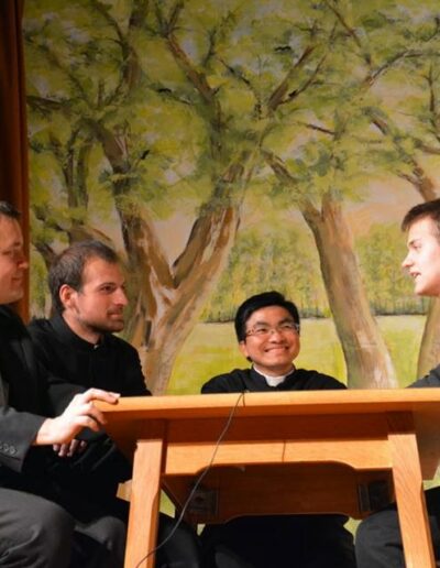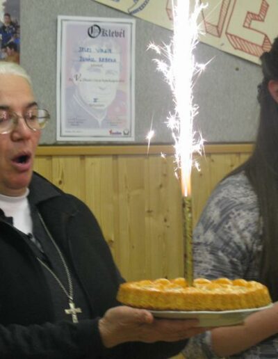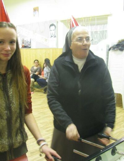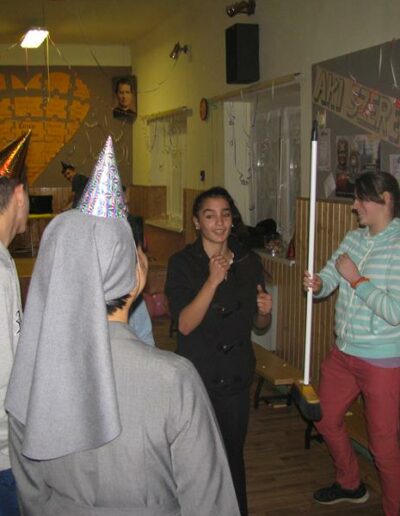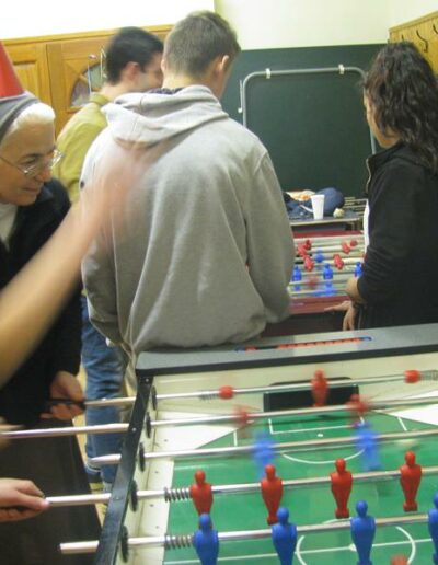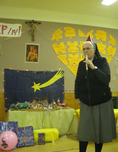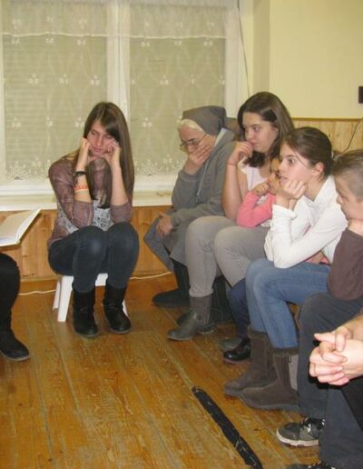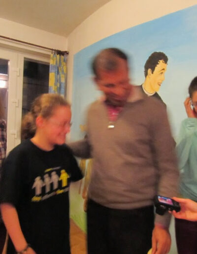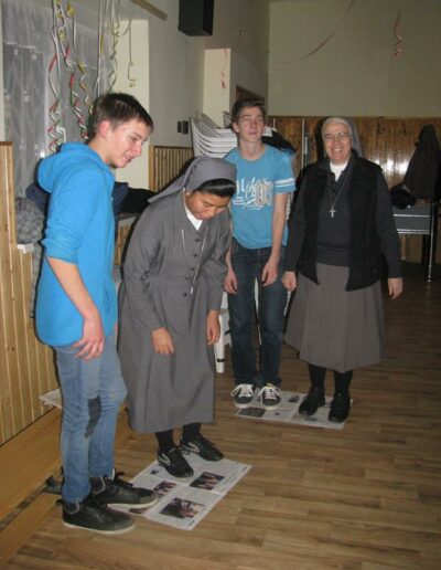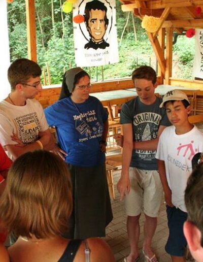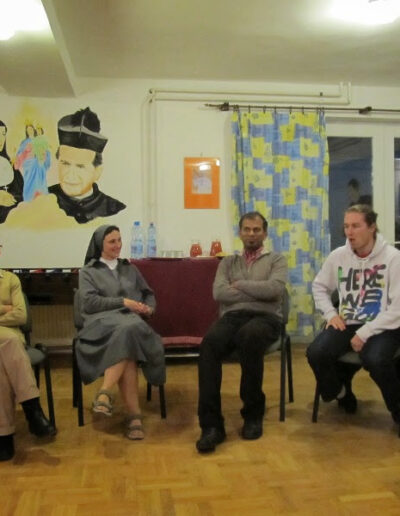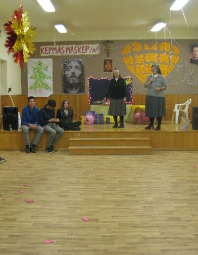 A rendfőnök atya egésznap köztünk volt, s a délután folyamán a közeli kisszínházban komolyabb és vidámabb kérdésekkel bombázták szalézi fiatalok.