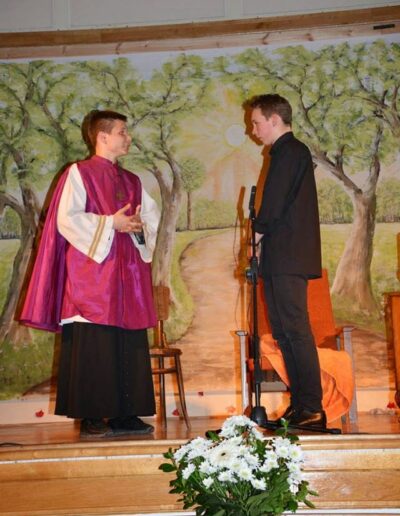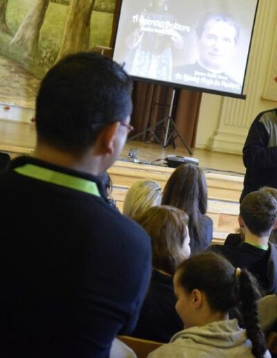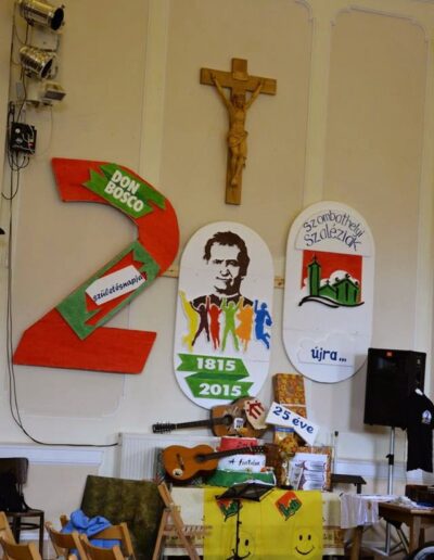 Az évek óta fennálló szokásainkat megtartva ez alkalommal is egy kisbusznyi fiatal indult Mogyoródról útra, hogy együtt ünnepeljünk Don Bosco születésnek 200. évében. Don Boscónak a gyermek Rua Mihály életét(ő volt Don Bsoco után az első rendfőnök) erősen meghatározó “Mi mindenben felezzünk!”,gondolata volt a nap jelmondata. E köré szerveződött a kiállítás, a színdarab. A 22015-ben, Middle Town városkában egy veszélyes vírus szabadult el, amely megtámadta vágyakat, leblokkolva a kreativitást, emlékezetet és a szabadságot. A színdarab csúcspontján érkezett meg a szalézi rendfőnök atya don Ángel Fernández Artime, aki nagyon stílusosan a múltat és a jövőt összeszövő, napjaink problémáit feldolgozó színdarab csúcspontján érkezett meg, s szólt a fiatalokhoz. „Az életnek, akkor van értelme, ha elajándékozod!”. A gondolat kört a szentmisében is tovább bontogatta. „Különféle életállapotokban lehet megélni a hivatást, házasság, munka, szerzetesség…. De add oda az életed!. Ettől lesz különleges.” „sokan azt mondják, hogy a keresztény élet unalmas, Don Bosco éppen az ellenkezőjéről győzött meg minket! És ez az ünnep is ezt jelzi! A nagy számú fiatal, akik most itt összejöttek a remény hordozói.”