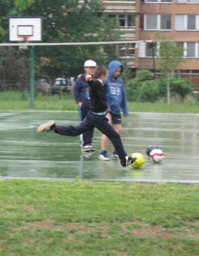 Ezután egy nagyon jó feladatot kaptunk, Ewa nővértől. Mielőtt a kollégisták lejöttek volna Elvira nővérrel vacsorázni, nekünk rendetlenséget kellett csinálni a konyhába, hogy majd ők vissza pakolják. Látni kellet volna az arcukat: szappan a földön, kenőkés a csapban, az asztalok felforgatva,kuka fejjel lefelé, tetején egy bögre…, hát igen, nagyon örülhettek!! 🙂 Majd közösen játszottunk az oratórium teremben, végül 8óra felé kisütött a nap és jó idő lett. Nagyon jól sikerült ez a szombati nap.