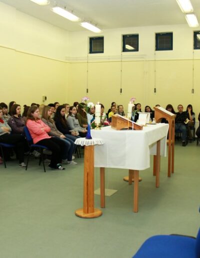 Köszönjük a sok szeretetet, segítséget, odafigyelést, támogatást, jóságot… Ilyen, és hasonló szavak hangzottak el az egri Kollégiumban április 24-én este. Az ünnepen részt vettek nemcsak a Kollégiumban lakó lányok, a munkatársak és a nővérek, de eljöttek az atyák is, akik itt szolgálnak a fiataloknak, sőt még más Kollégiumokból is fiatalok, akik rendszeresen járnak ide az ifjúsági szentmisére.