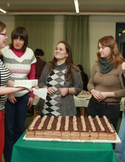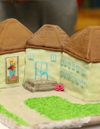 Az ünnepi szentmise után rövid program következett, és agapé, amelynek a csúcspontja volt a Kollégium alakú gyönyörű torta. A vidám szalézi hangulathoz nem hiányozhatott befejezésül a tombola sem, amely igazi családi légkört teremtett.