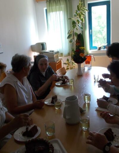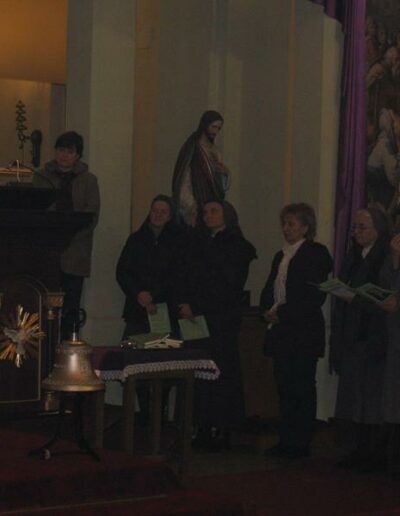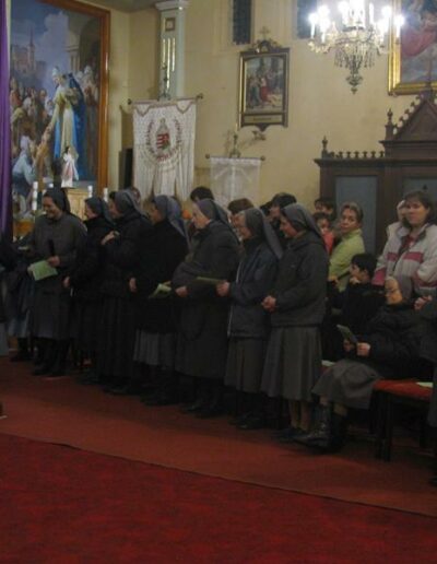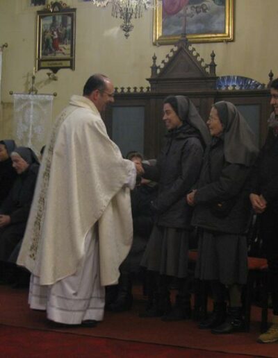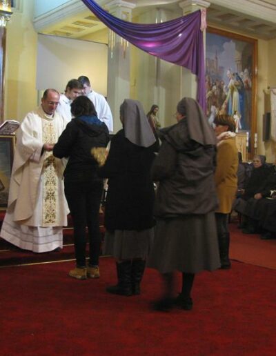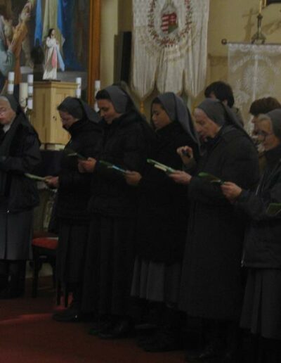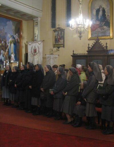 Az ünnep egy kis közös beszélgetéssel kezdődött a nővérek házában, s a helyi plébánia templomban folytatódott, ahol először a Szentségimádásban a hivatásokért, az újakért és a saját hűségünkért imádkoztunk. Majd a szentmise következett, melyet plébánosunk Tóth József Miklós atya mutatott be, s nagyon kedvesen még olaszul is köszöntötte a nővéreket. Az ünnep fényét igazán emelte, hogy a helyi kórus énekelt. Szép számmal voltak jelen a Szalézi Munkatársak, a Laura Vicuna Óvoda dolgozói és gyermeki a szüleik és még sokan mások.