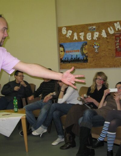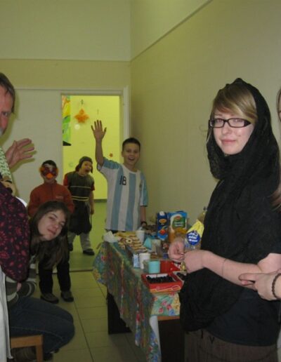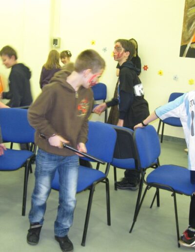 A gyerekek nagyon izgatottak voltak és az animátorok is. A belépőket süti és innivaló formájában vártuk. Ha valaki belépett az Oratóriumba látta, hogy mindenki be van öltözve valaminek… voltak nagyon kreatív jelmezek pl: csavarhúzó, csiga. De előfordultak egyszerű jelmezek is pl: rendőr, cica, és volt nagyon ötletes is Jancsi és Juliska, ami csoportos jelmez volt. Persze ezekre az igen ötletes jelmezekre várt egyfajta „kihívás” jelmezverseny formában. Amit nagyon élveztek, hogy a jelmezt büszkén viselve kiállhattak a többiek elé és bemutathatták.