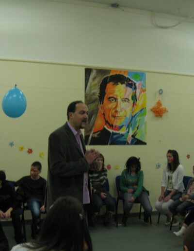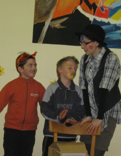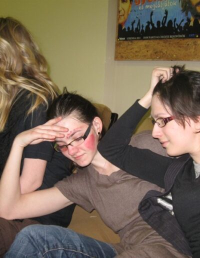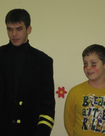 De azokról sem feledkeztünk meg, akik nem öltöztek be ugyanis nem volt kötelező. Ezért rendeztünk egy „ereszd el a fantáziád mennyire szereted a másikat, avagy minek képzeled őt” ez volt az arckifestős verseny te magad választhattad ki, hogy kivel szeretnél párban lenni. Ezt még a legkisebb gyerek is tudja élvezni ‘hisz rajzolni mindenki tud’ csak a fantáziádat kell használni és mi tudjuk, hogy a gyerekeknek van a legnagyobb fantáziájuk.