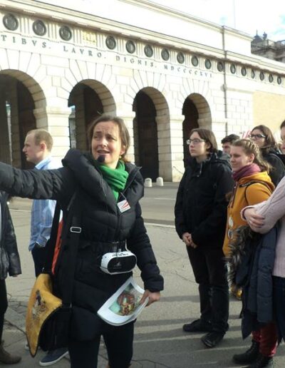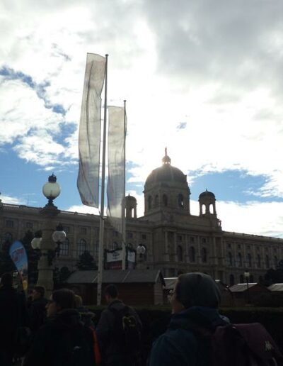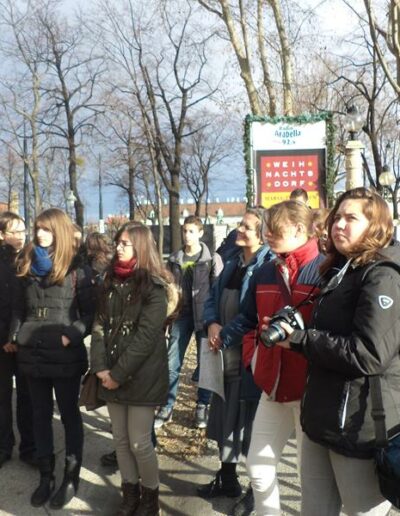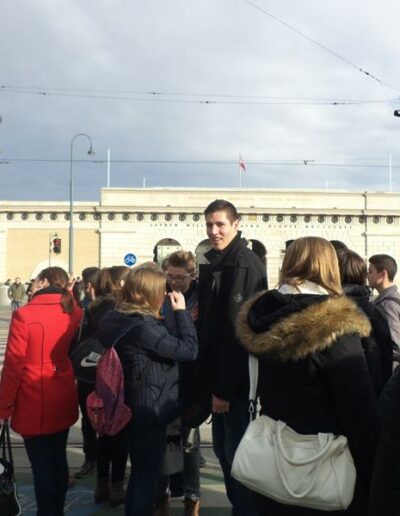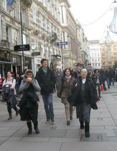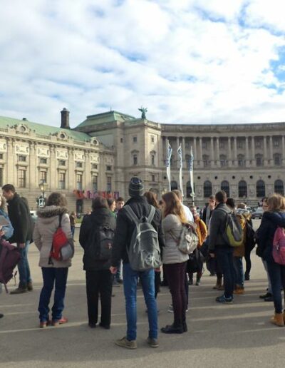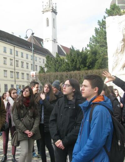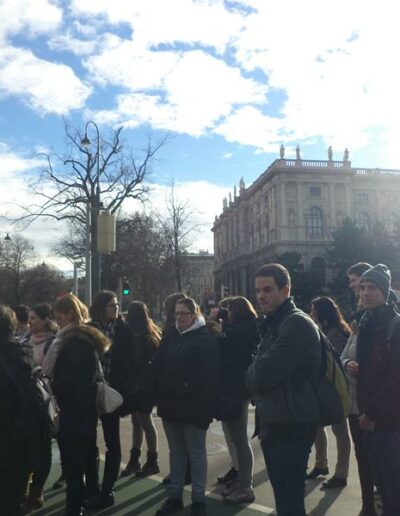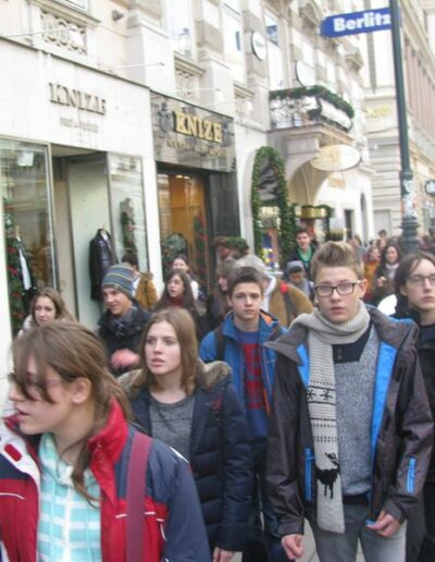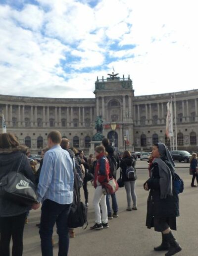 A reggeli korán kelést, és az indulás izgalmait a buszban kipihentük, így észre sem vettük, s megérkeztünk az osztrák fővárosba, ahol már várt bennünket egy hivatalos idegenvezető , hogy Bécs nevezetességeit élőben is megismerhessük. Városnézésünk 2 órája alatt, míg a Hofburgtól a Stephans Dómig sétáltunk, sok érdekességet láttunk. Bár a magyarok számára oly fontos templom tornyában lévő 373 lépcsőt, csak a legbátrabbak mászták meg, de aki nem sajnálta az energiáját és az idejét, az egy felejthetetlen élménnyel lett gazdagabb.